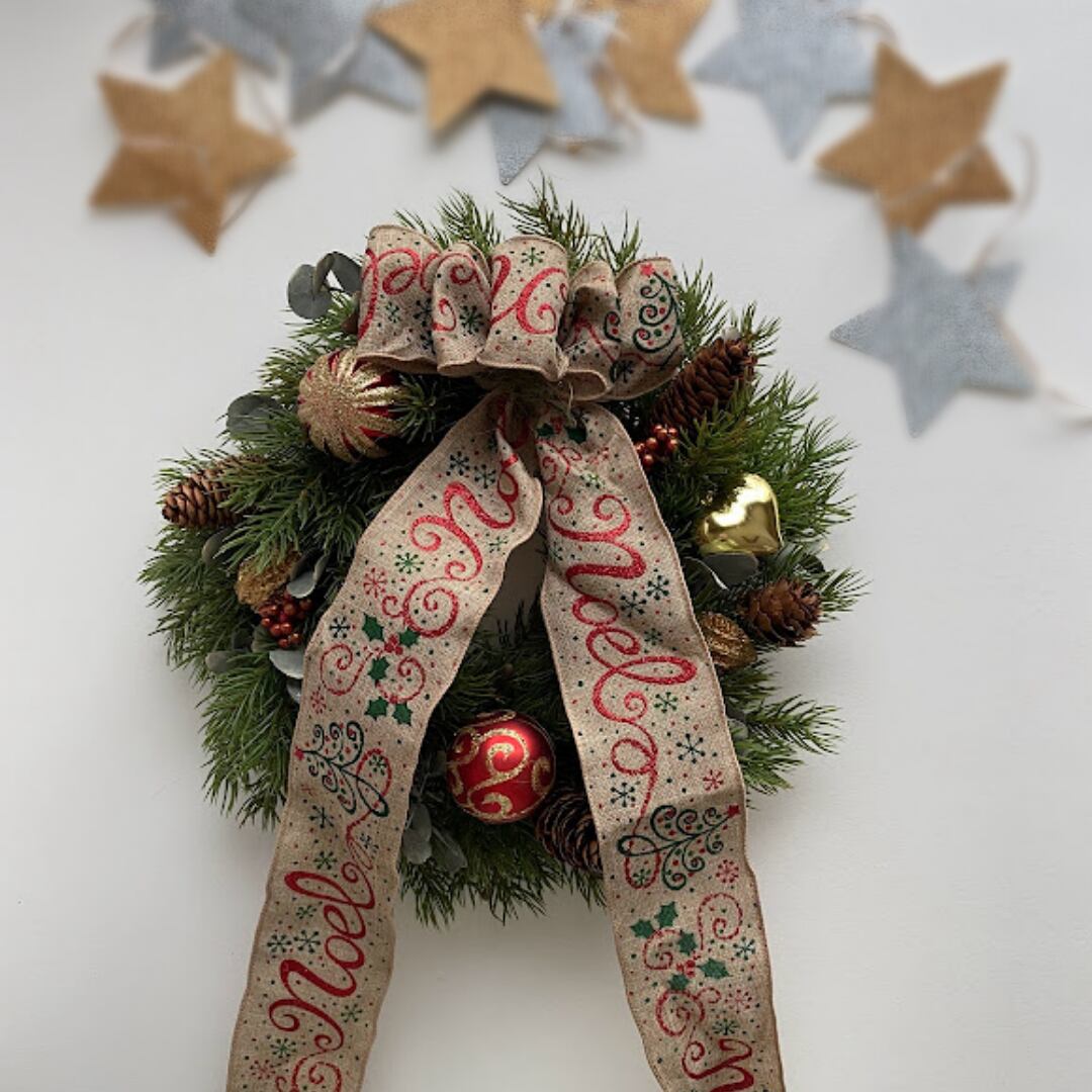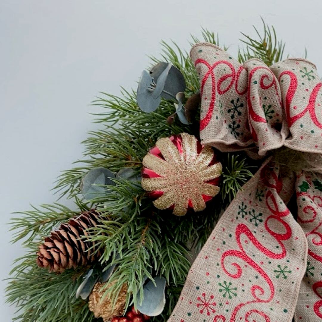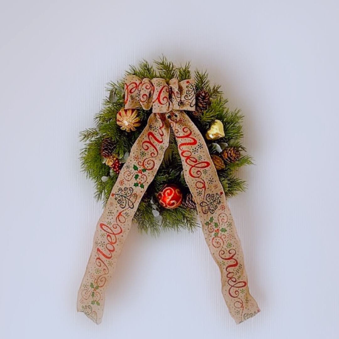 クリスマスリース グリーンリース ナチュラルリボンのクリスマスリース ドアリース おうちクリスマス