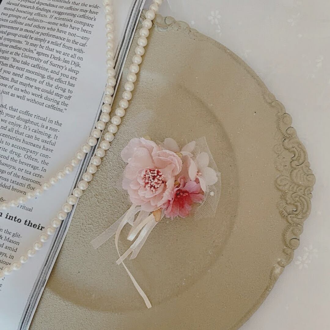 コサージュとしてだけではなく、ヘアアクセサリー・バックチャーム・ストールなどの普段使いのアクセサリーとしてお好きなところに付けてお楽しみください。