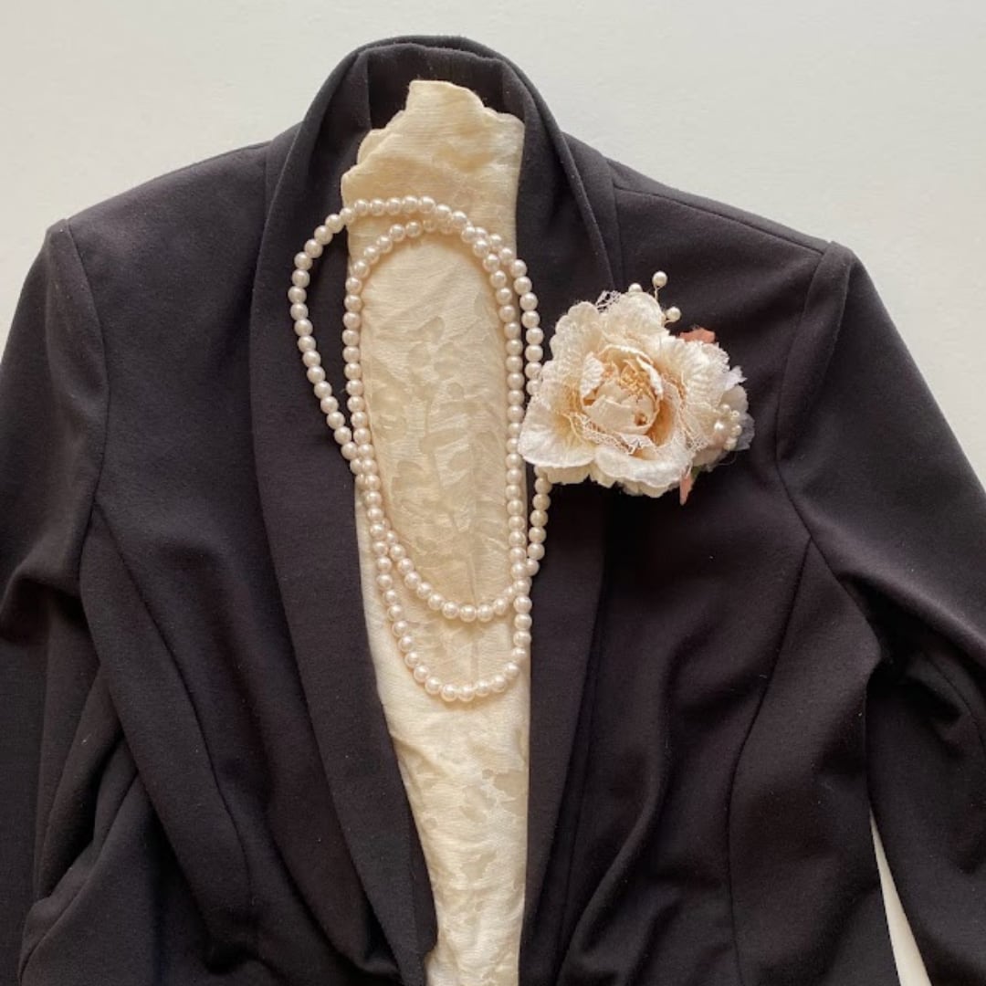 コサージュをどの向きにもお使いいただけるのでとても便利です。ぜひ、お試しください。