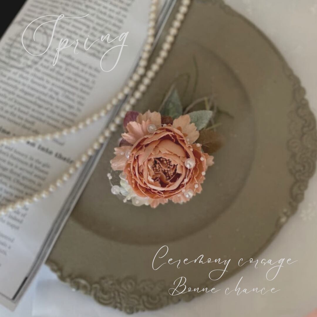 ハレの日 ピオニ―コサージュ サーモンピンク 入園式コサージュ 入学式コサージュ ママコーデ フォーマル コサージュケース