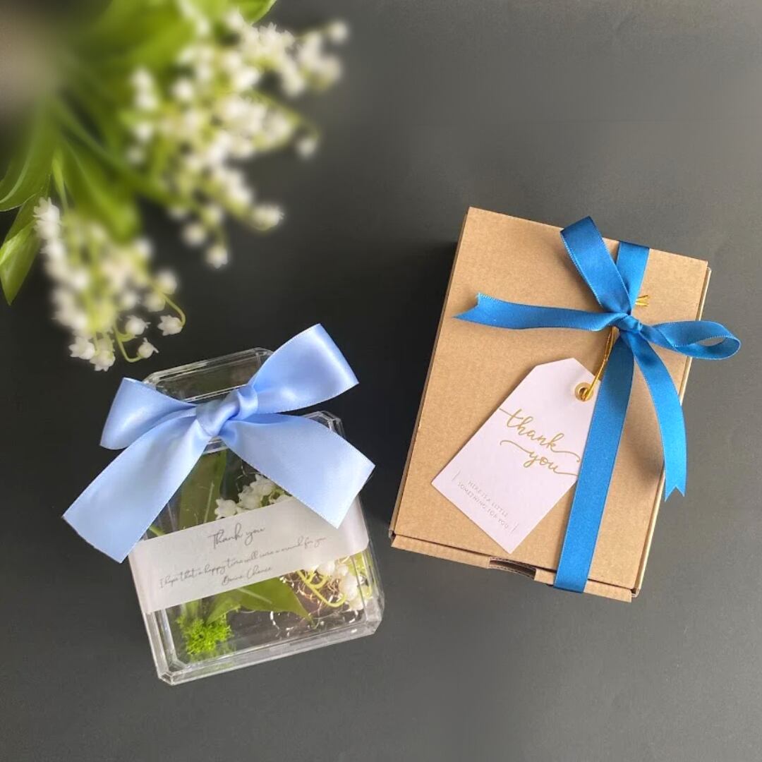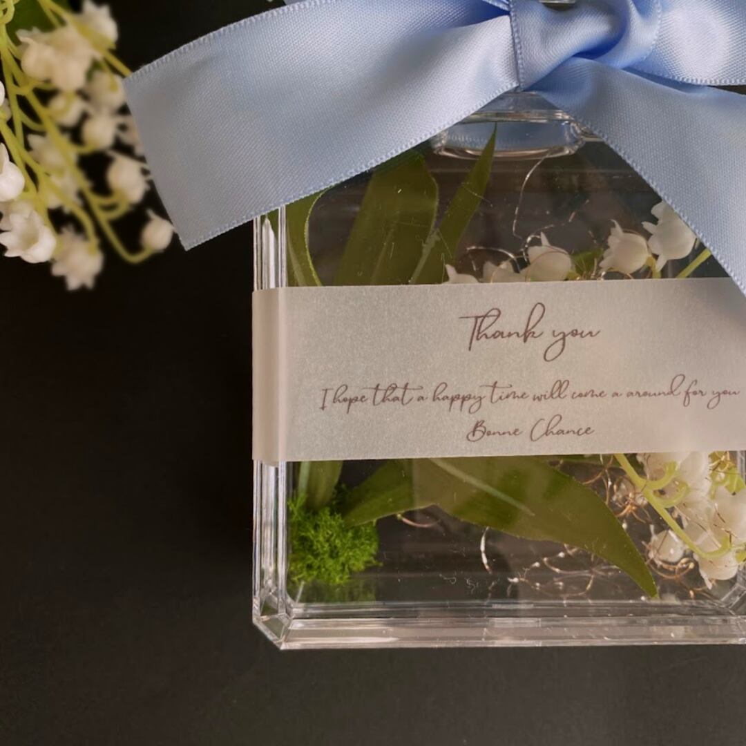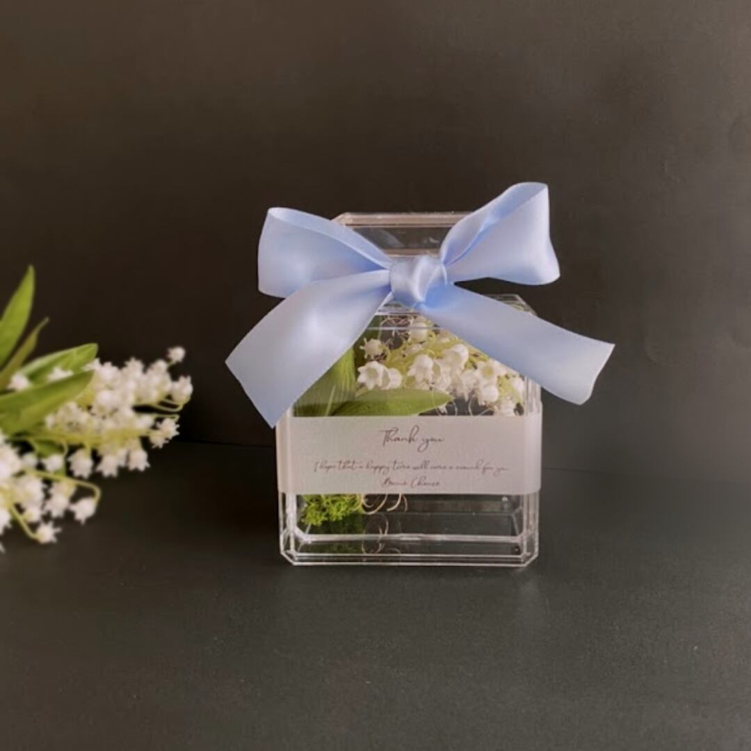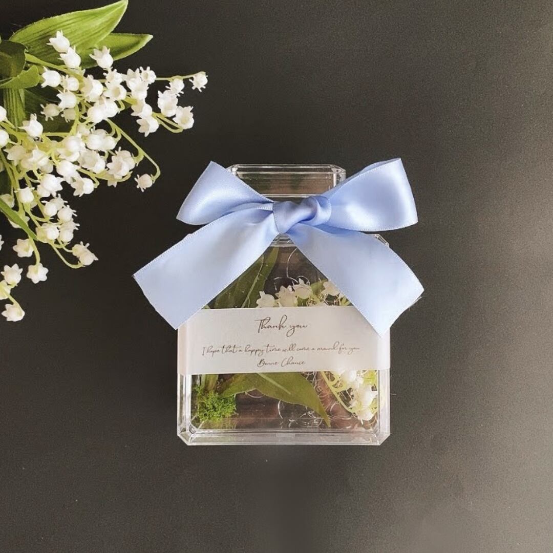 フラワーギフト ブルー 可愛い すずらん 幸せを運ぶ プレゼント ギフト 母の日 贈る 幸せ 誕生日 記念日 感謝 インテリア おしゃれ リボン 透明