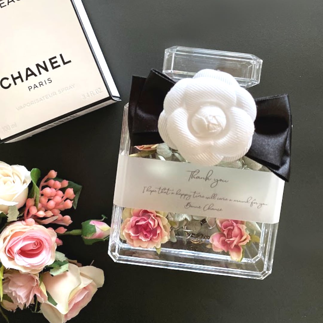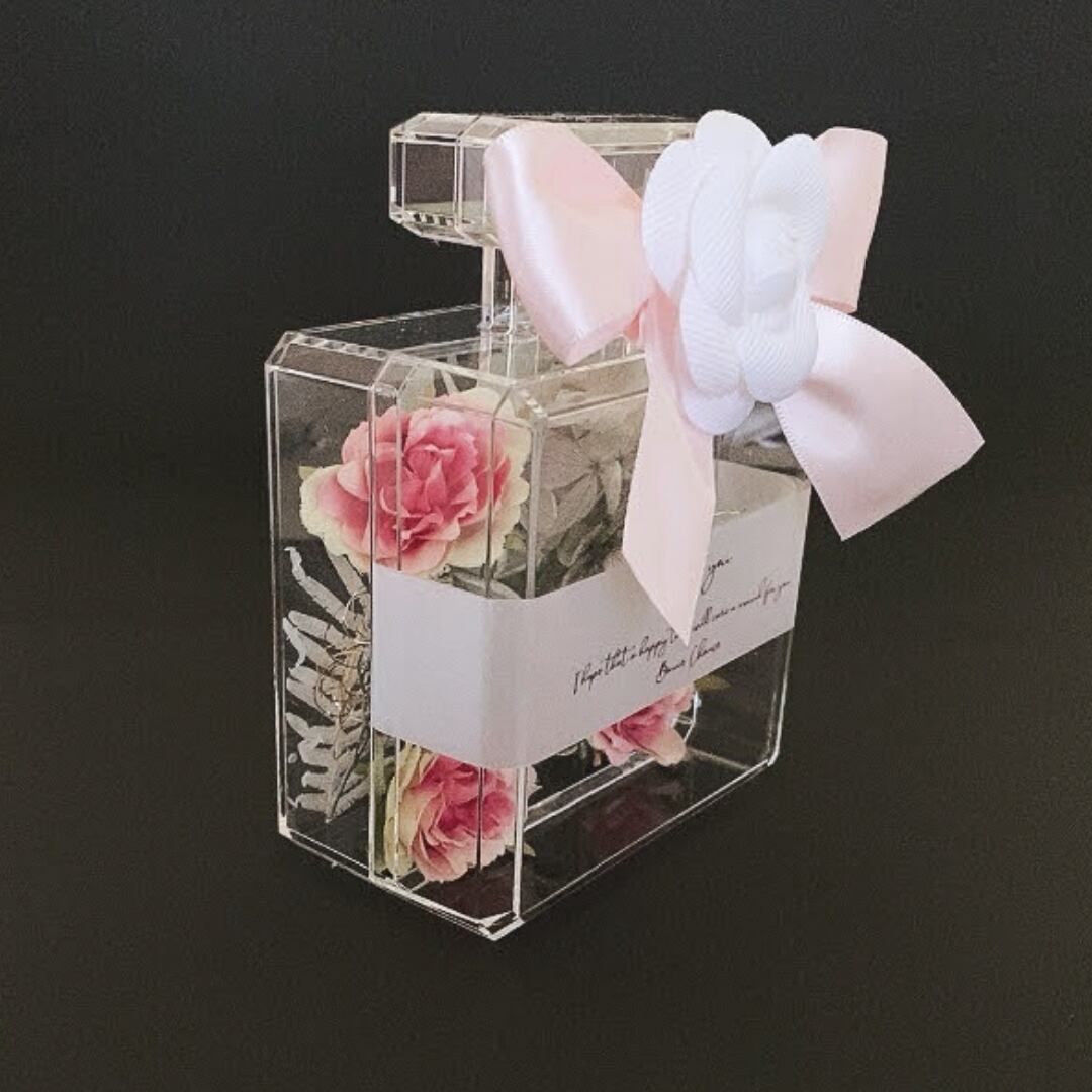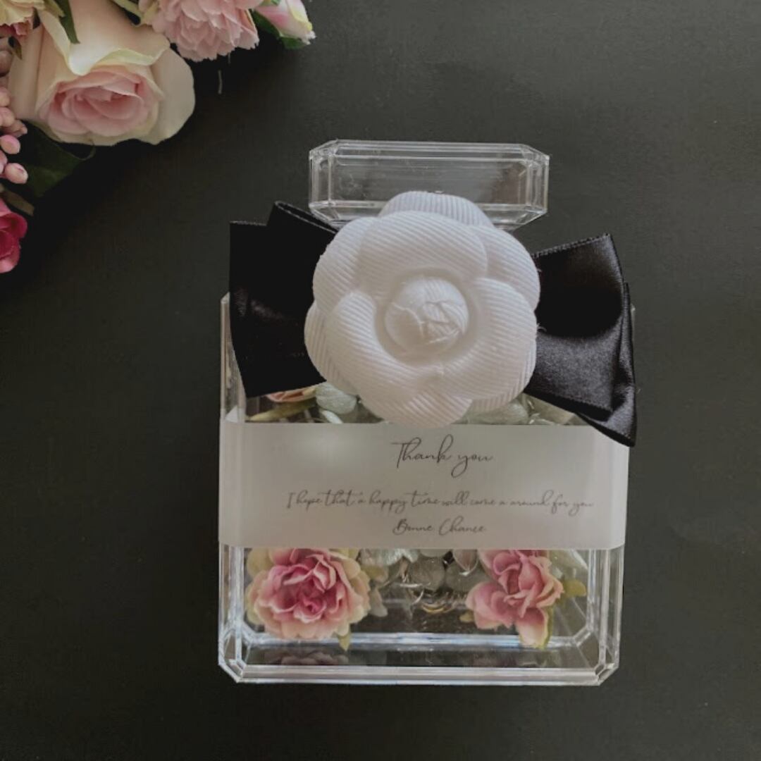 香水瓶をモチーフとしたケースは透明度が高く、インテリアとしても楽しんでいただけます。
