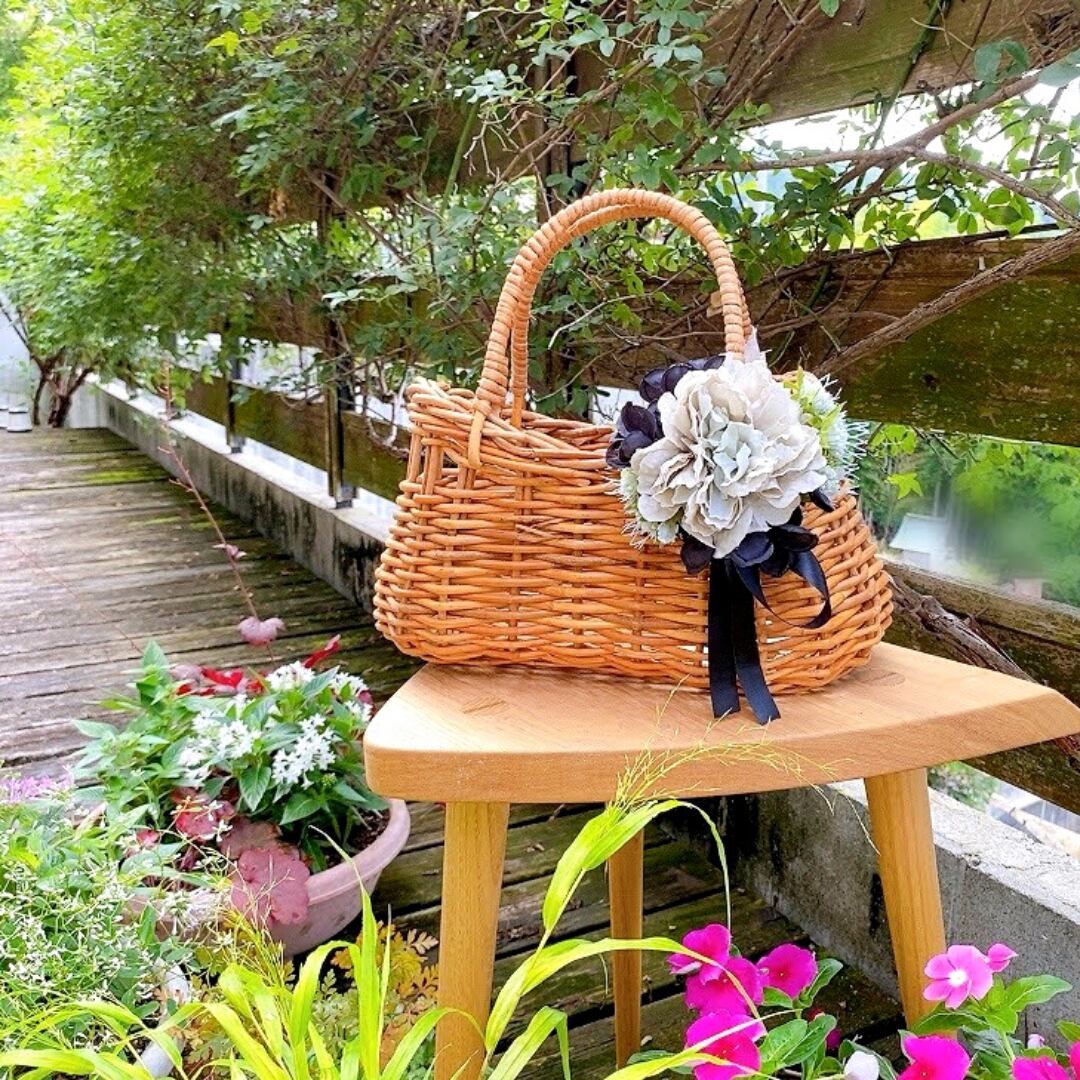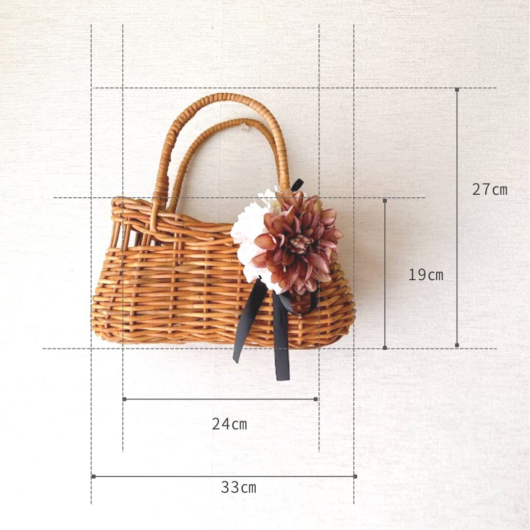 カゴバッグ 夏の定番 自然素材 ラタン おしゃれ コサージュ リボン カゴ バッグ 夏のテッパン プレゼント フラワーギフト かご ナチュラル