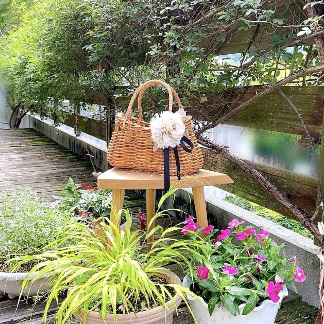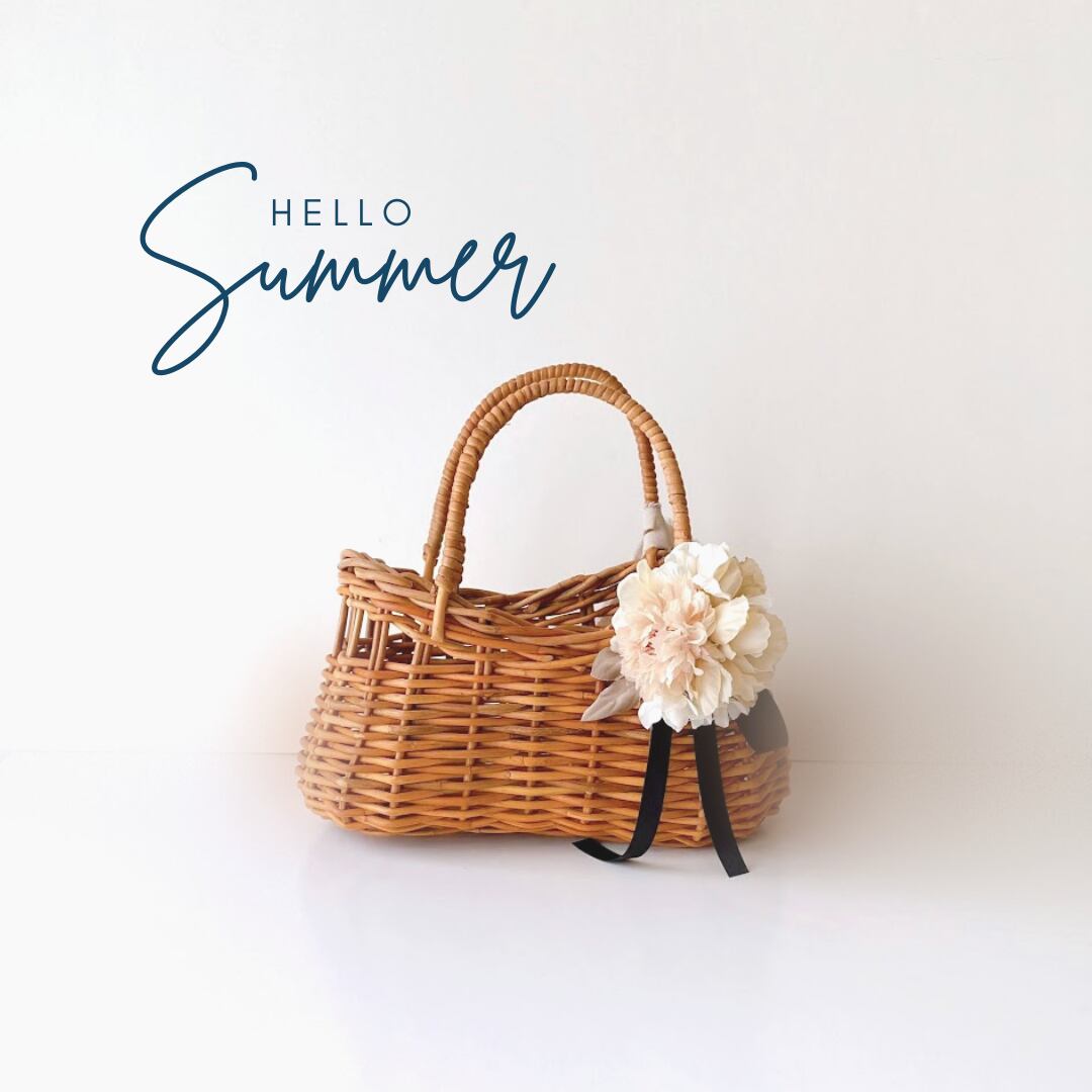 夏の大定番のカゴバッグ コサージュリボン付き