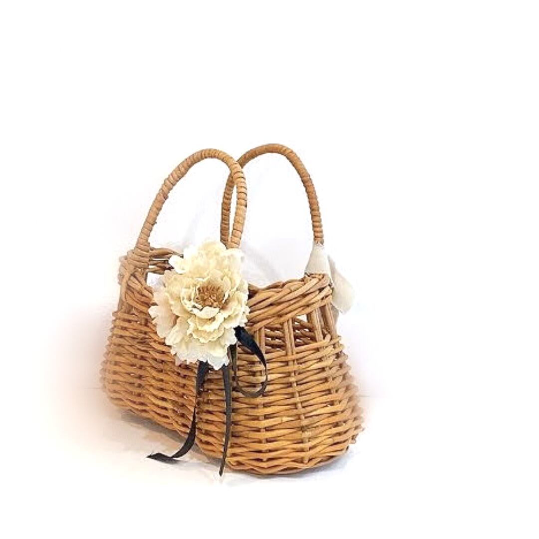 ▢ ▣ カゴバッグ コサージュリボン付き ▣ ▢