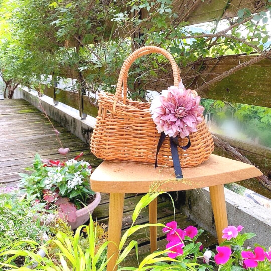 ラタン(藤)の風合いを生かした、ナチュラル素材のおしゃれなデザインなので洋服でも和装でもよく合います。