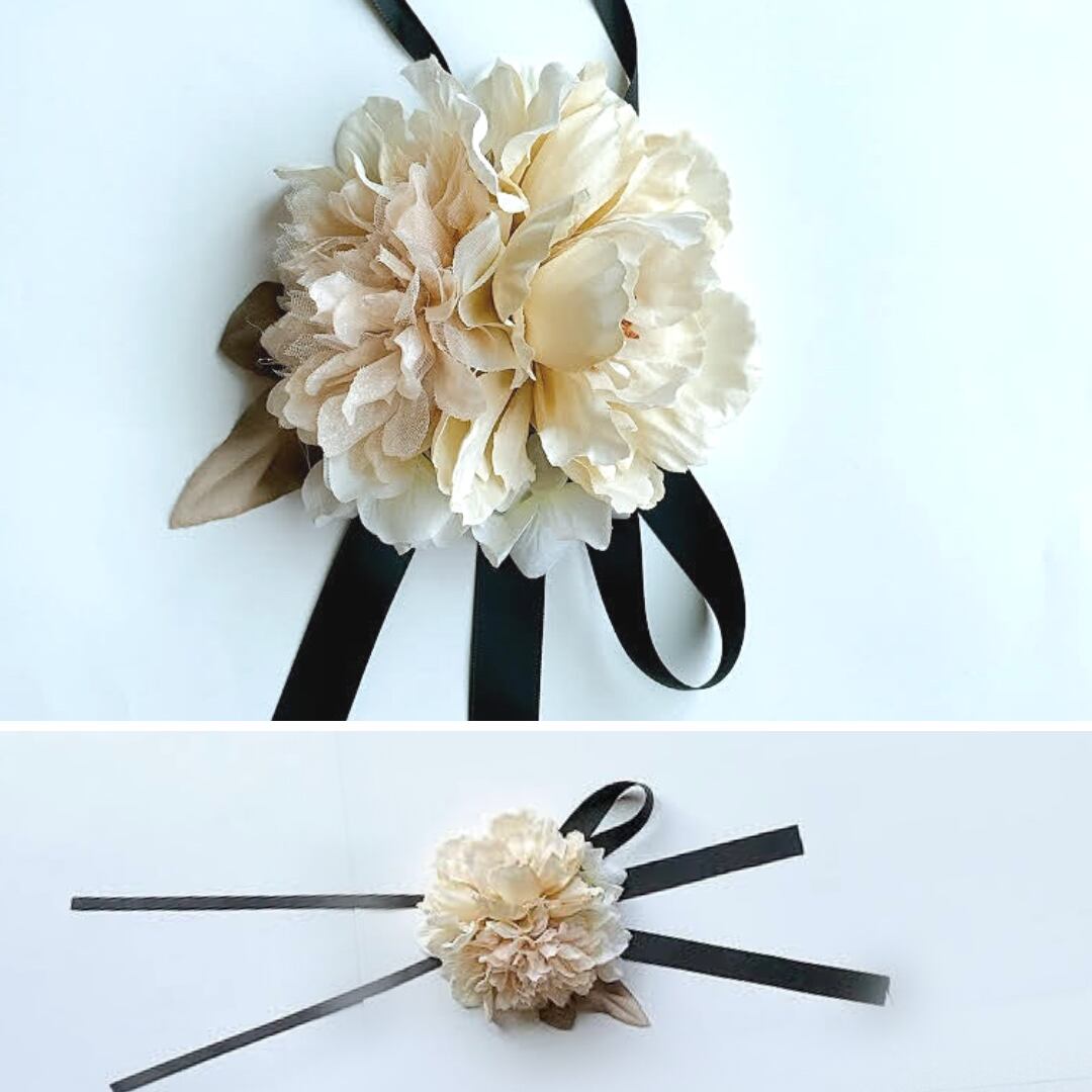 コサージュリボンは便利な取り外し可能タイプです。