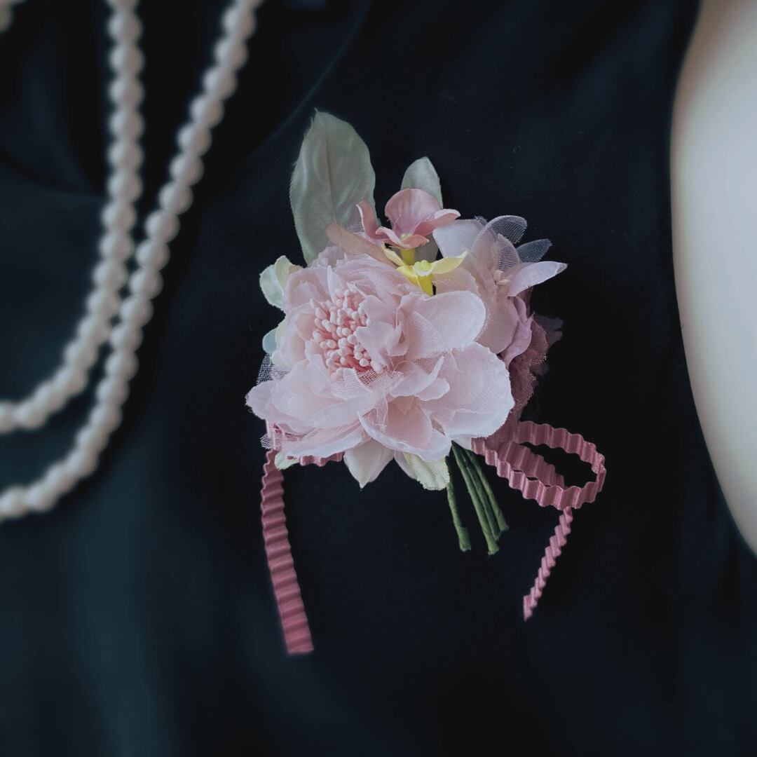 #コサージュケース #ハレの日 #ピンク #白 #上品 #華やか #アーティフィシャルフラワーのコサージュ #小さめコサージュ