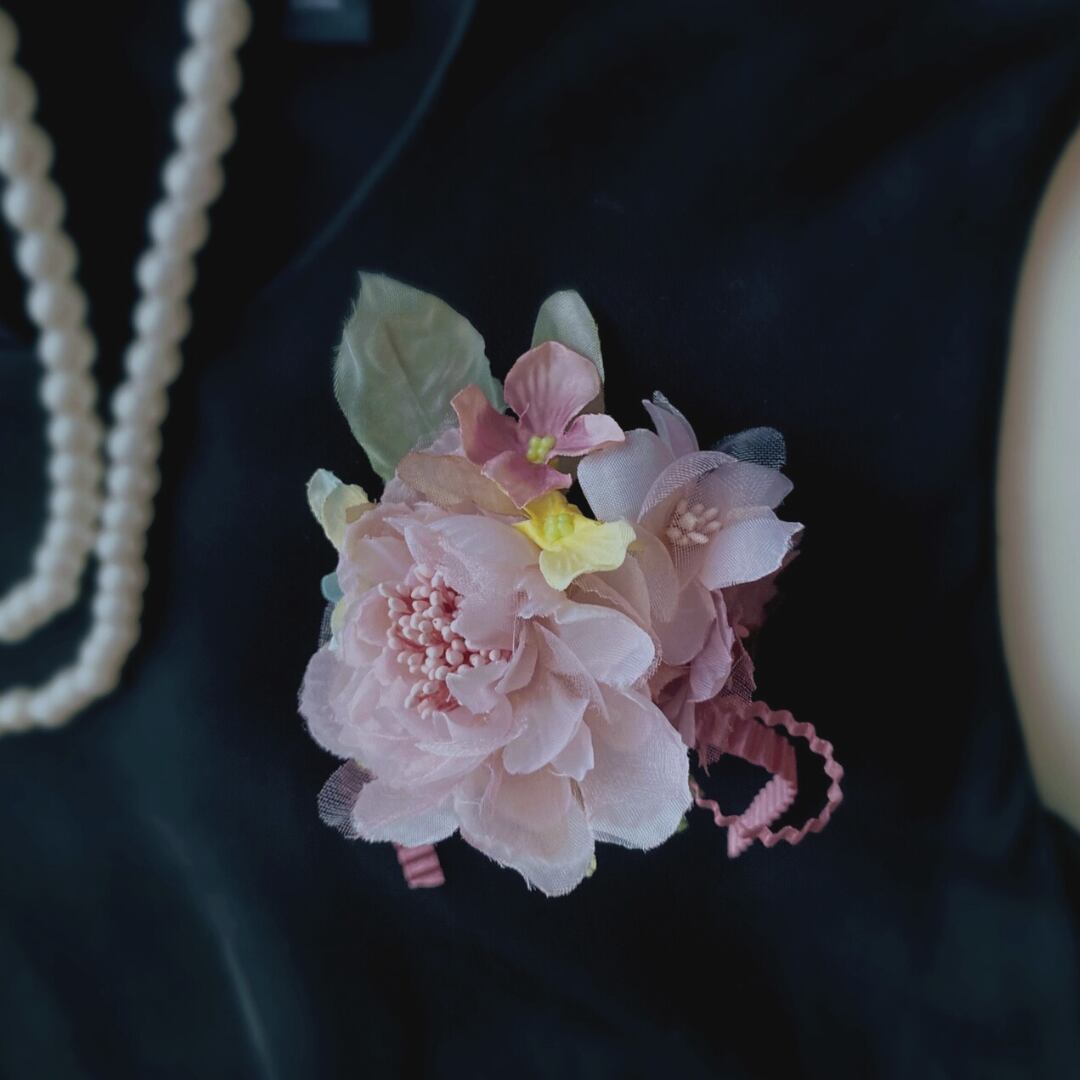 こだわった1点物のコサージュ。